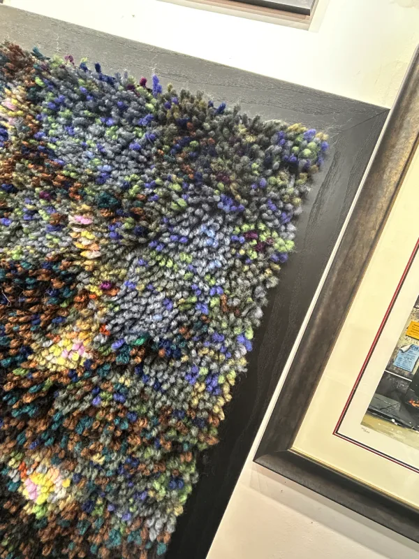 This handmade latch hook tapestry features a vibrant and detailed image of Madonna, crafted with soft yarn for a textured, vintage look. Perfect as wall art or a unique gift for fans of pop culture and retro decor.